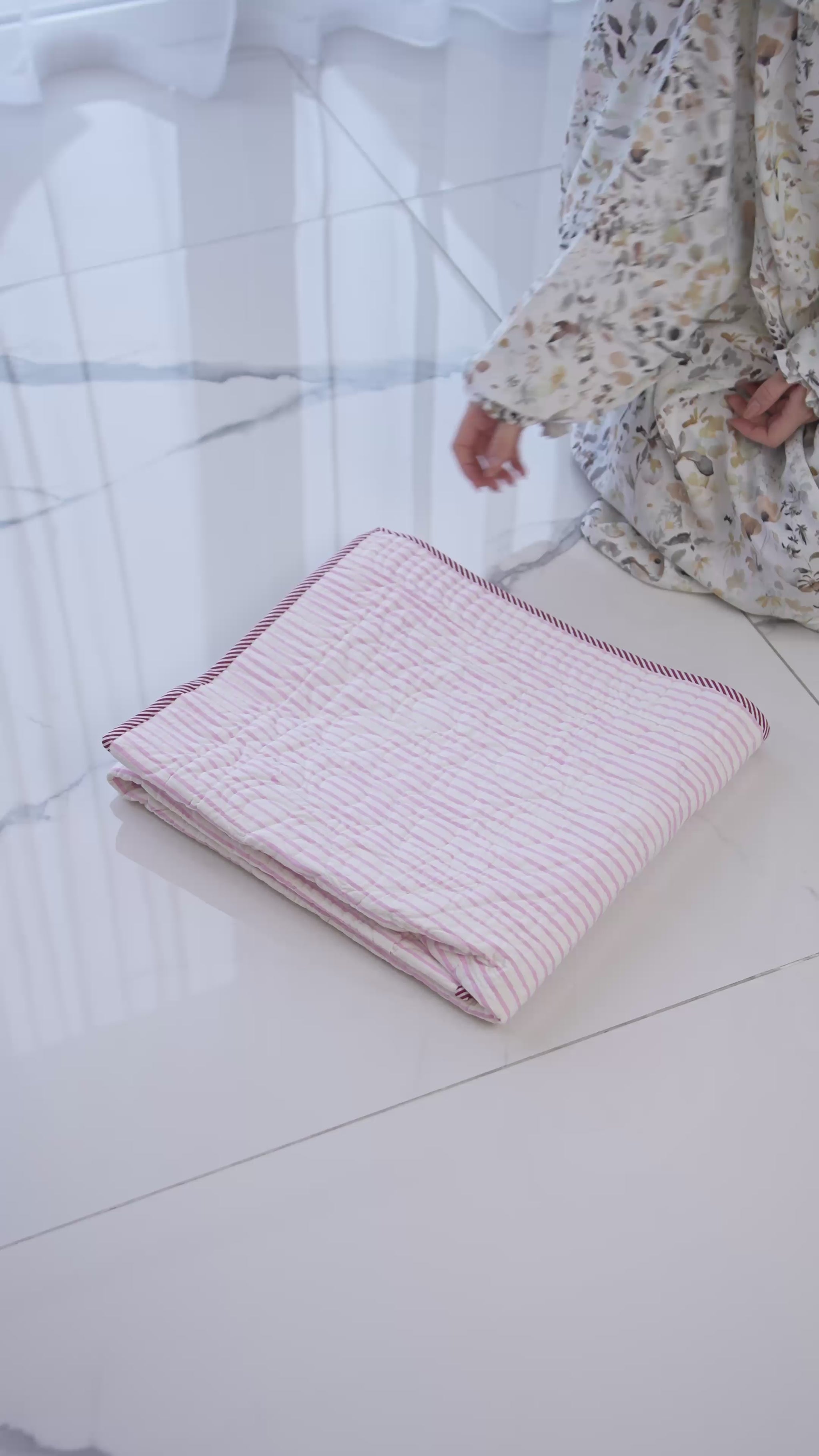 The Noor cotton prayer mat is a unique piece crafted from 100% cotton, both on the top and bottom and in the filling.