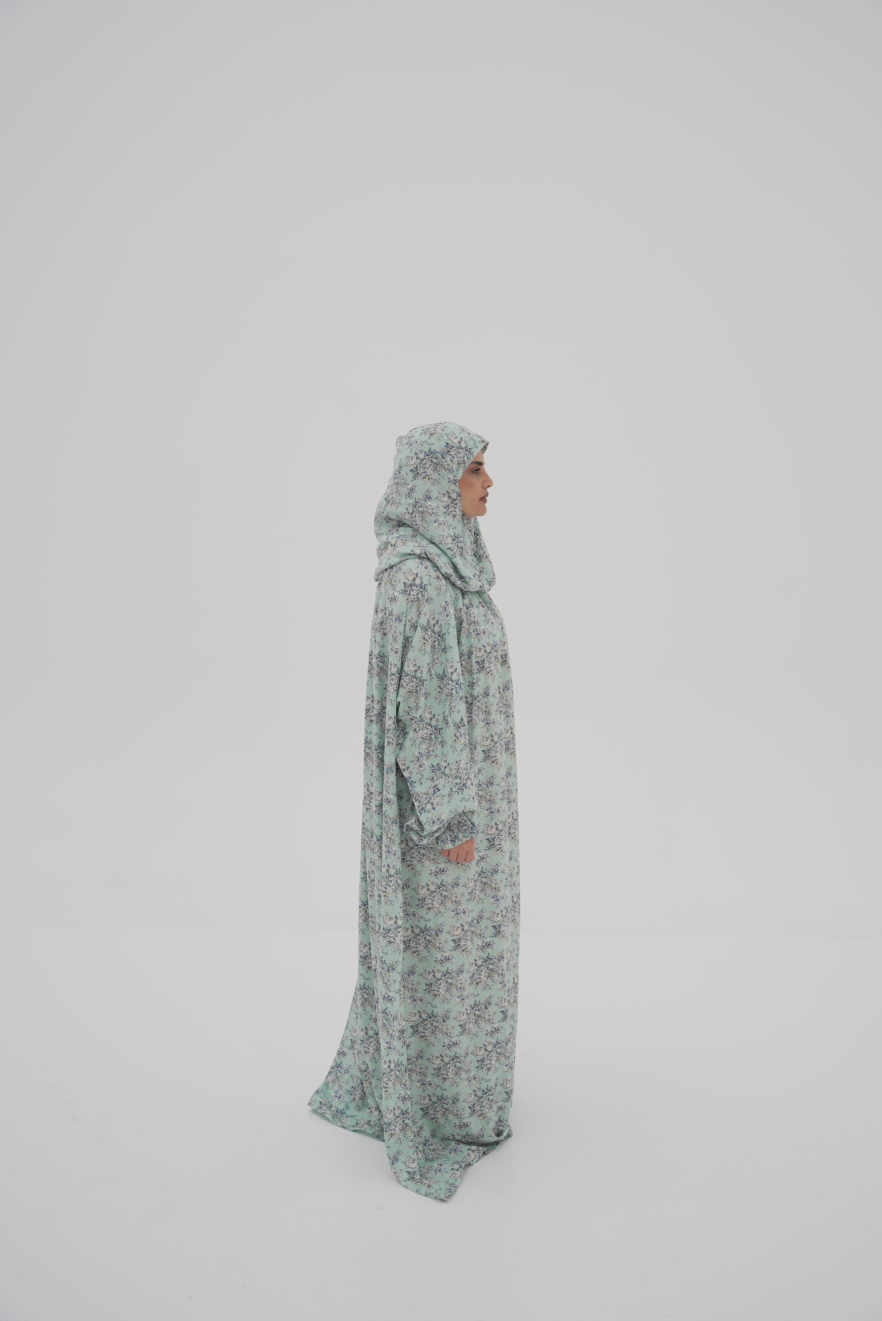 Elegant A-line design offers full, modest coverage with natural, graceful movement, featuring an integrated khimar with soft elastic for a secure, lightweight, and easy fit. The built-in velvet guide ribbon ensures effortless dressing, while wide sleeves with soft elastic cuffs stay comfortably in place during all prayer positions. Crafted from breathable, soft, high-quality fabric, it provides maximum comfort and airflow, with a stable and comfortable fit that allows smooth movements, including Tasleem—designed to enhance focus, serenity, and ease throughout your prayer.